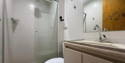 Dispõe de 2 quartos, sendo 1 suíte com acesso à varanda frente mar, além de banheiro social.