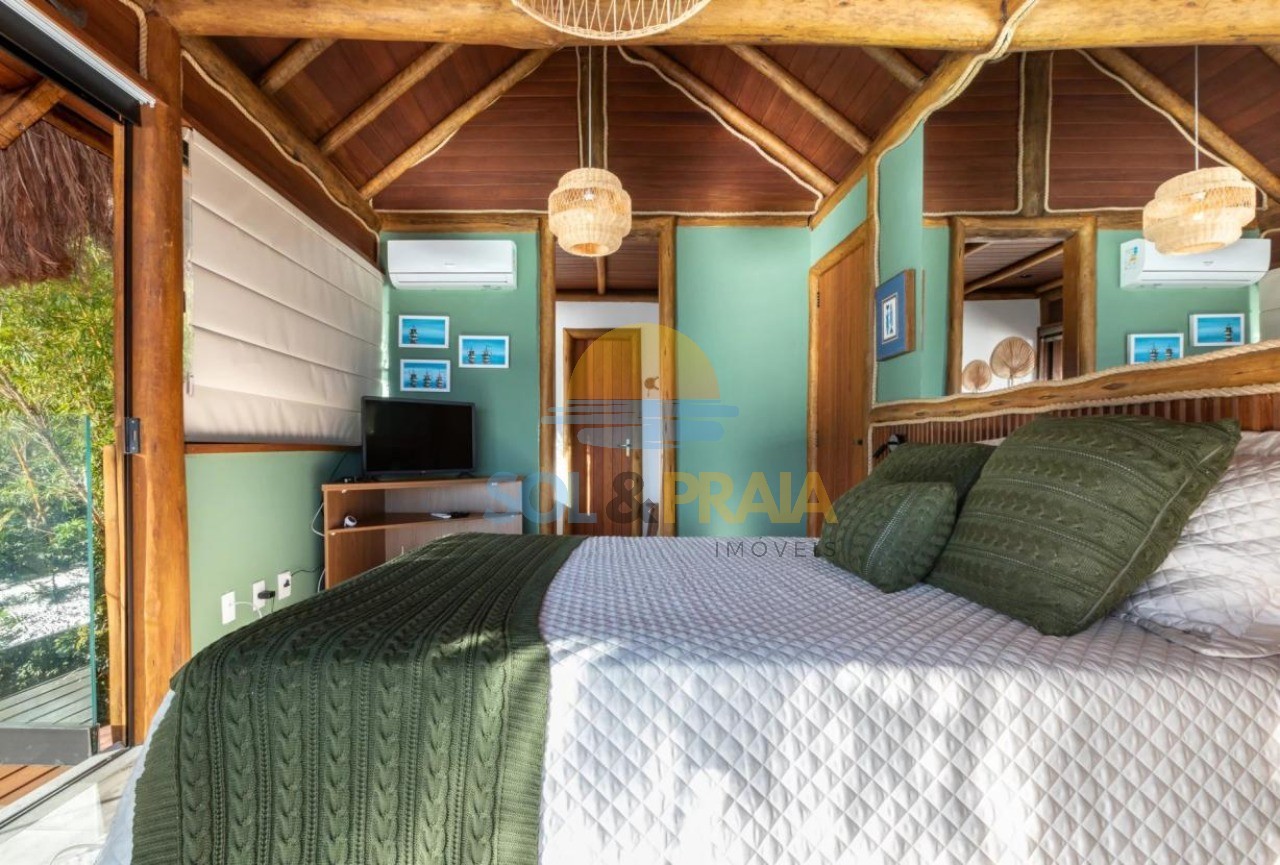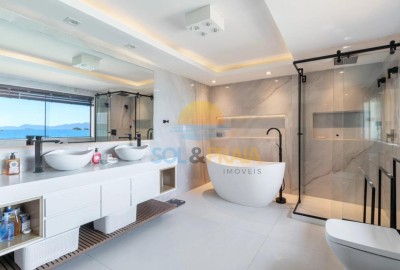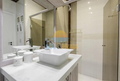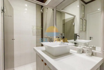 – Casa com 06 suítes, sendo 04 no primeiro pavimento e 02 no segundo pavimento, sendo 01 comum e a outra é a master, a suíte master possui uma área externa para café entre outras funções com vista para o mar.
