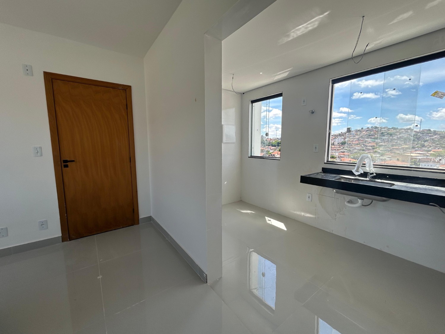 Bancadas em granito na cozinha e banheiros (verde Ubatuba ou opção clara).