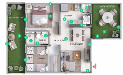 ✔ Apartamentos de 2 quartos