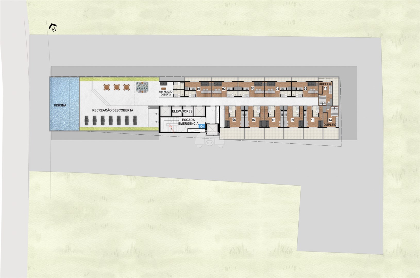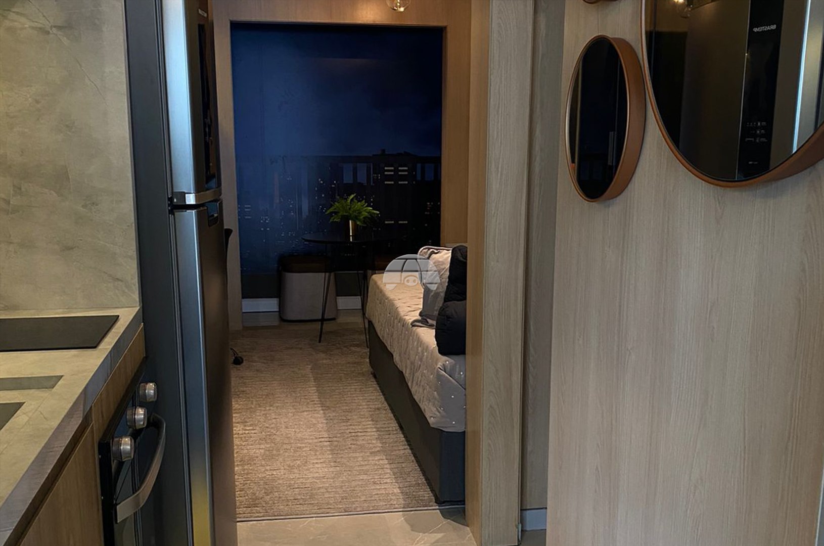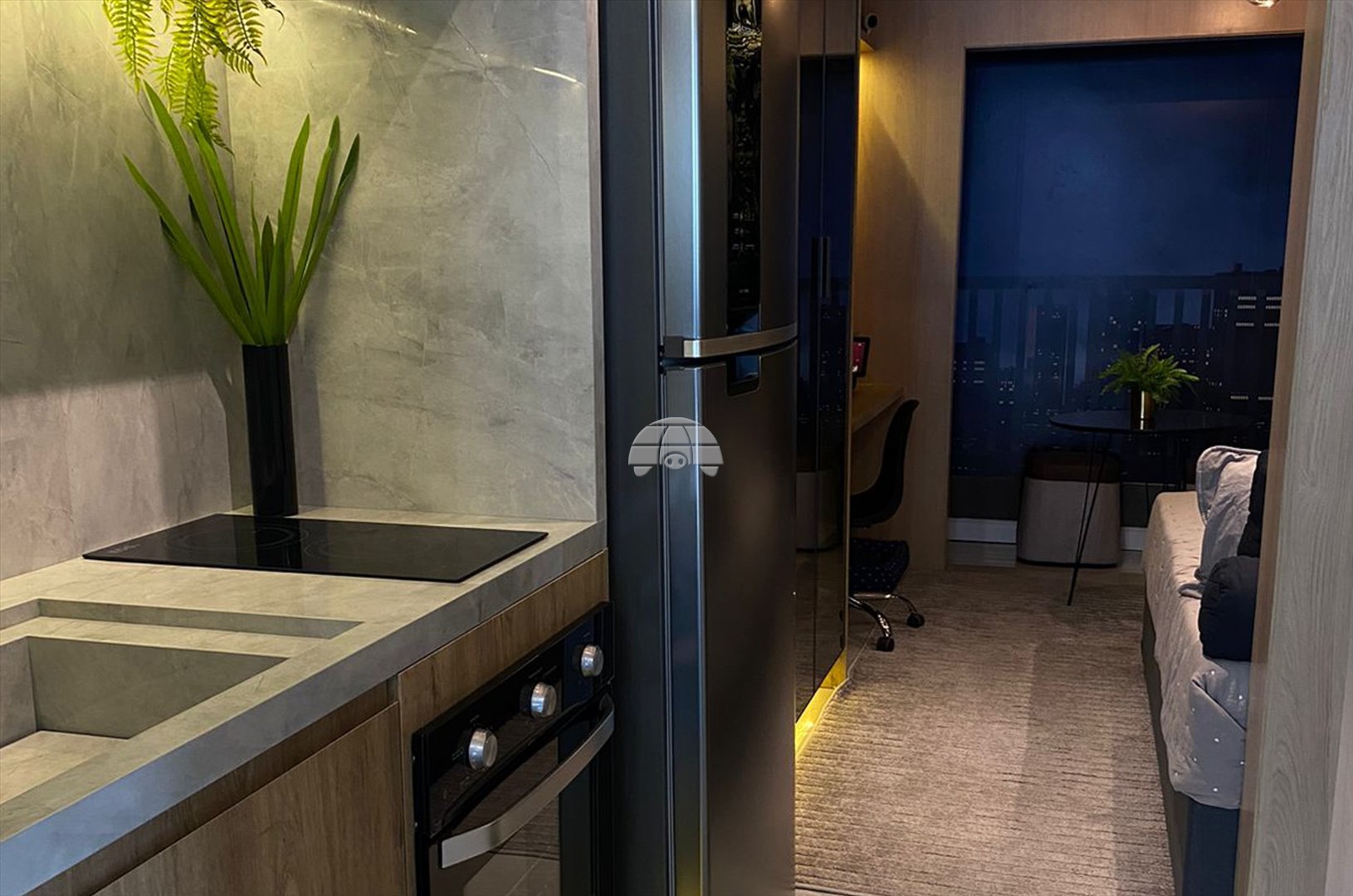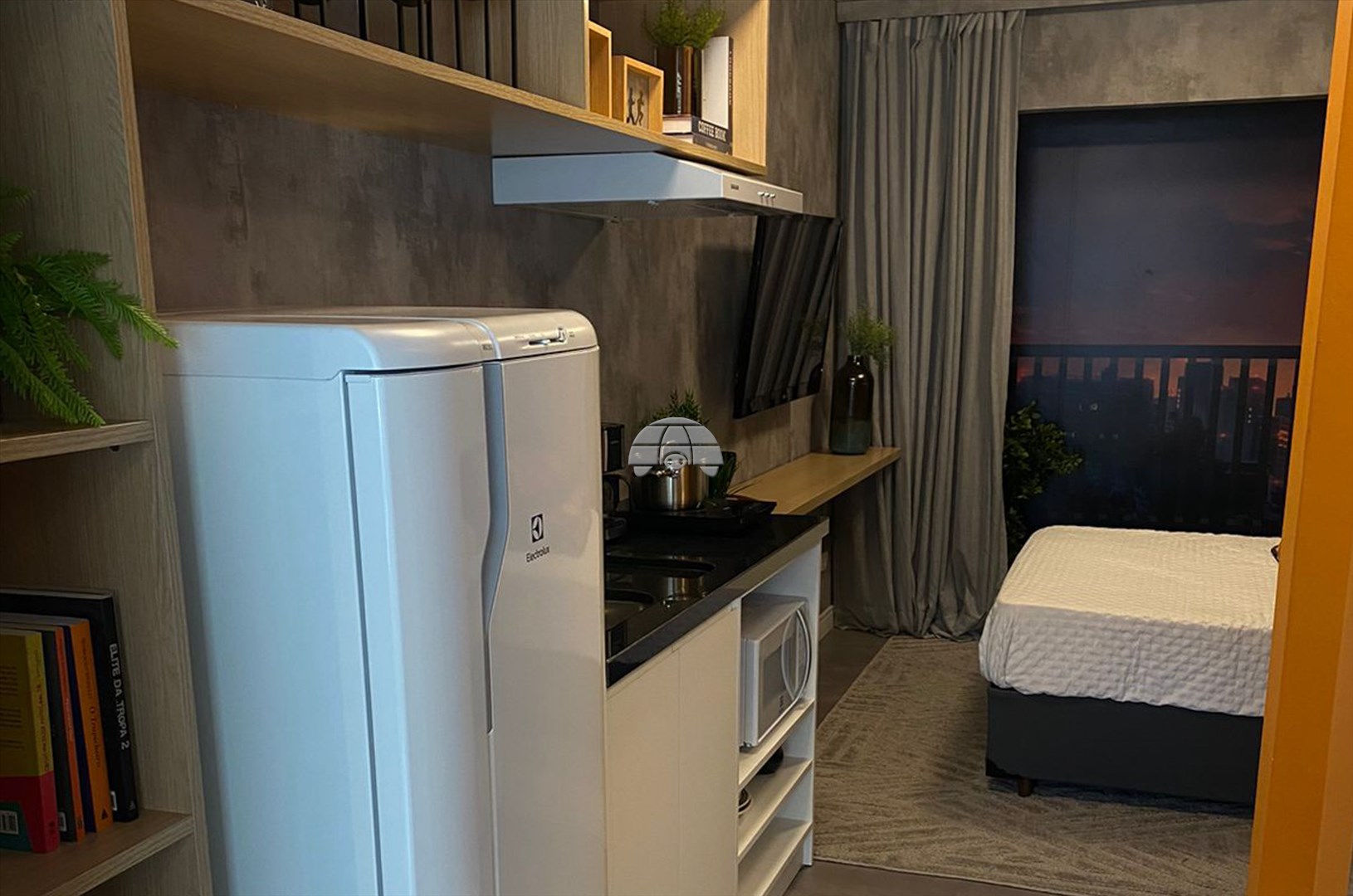 Um apartamento duplex de 23,78 m², , com layout integrado e funcional em dois níveis, no piso inferior inclui cozinha, sala, banheiro e no piso superior um dormitório , além de inovações como isolamento acústico superior e eficiência energética via placas solares na fachada, perfeito moradia, jovens, casais ou investidores.