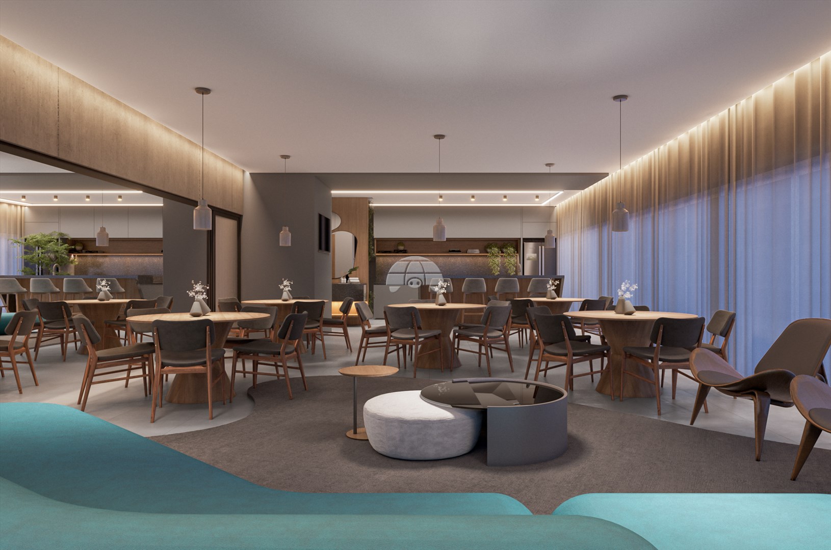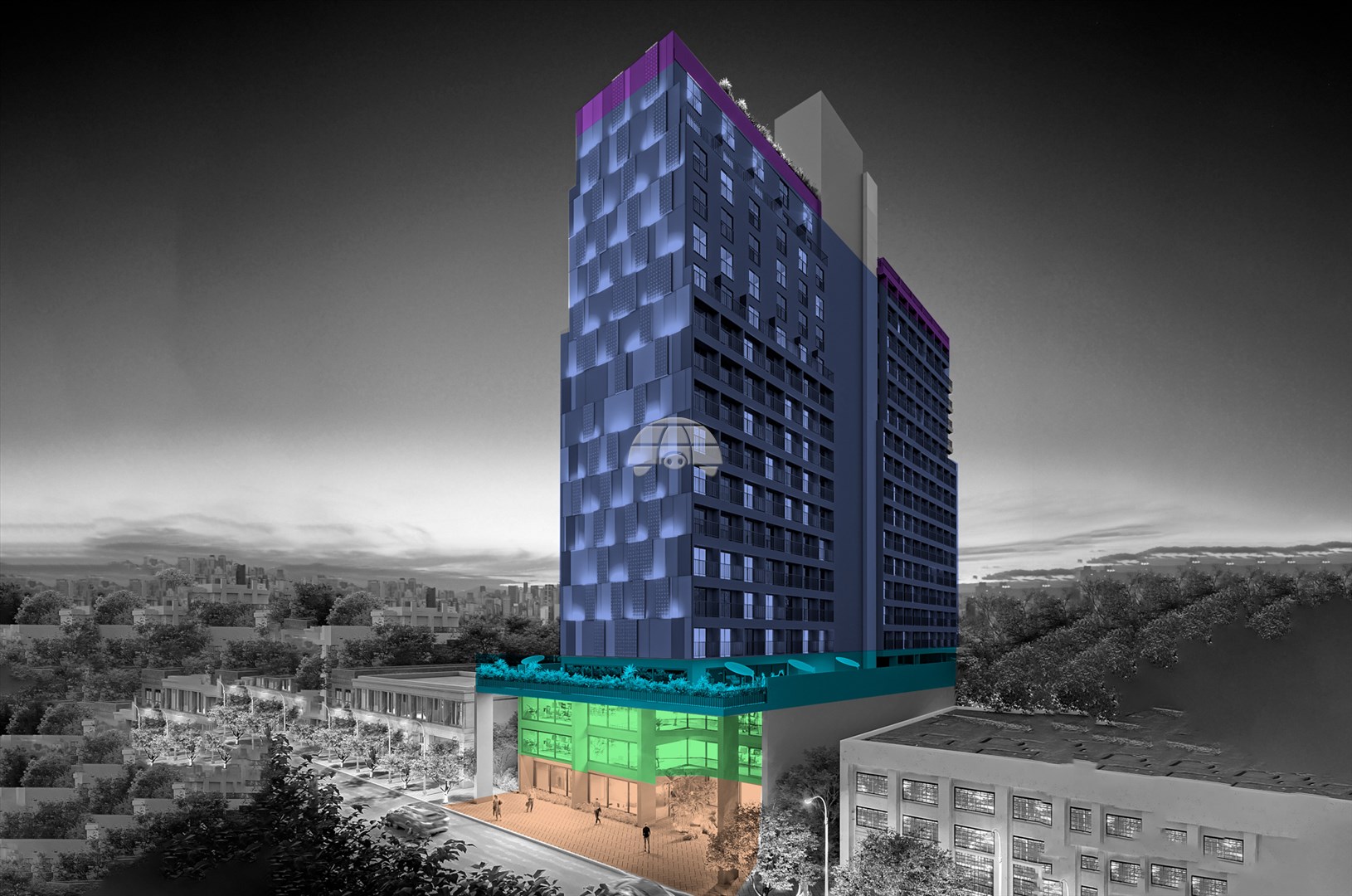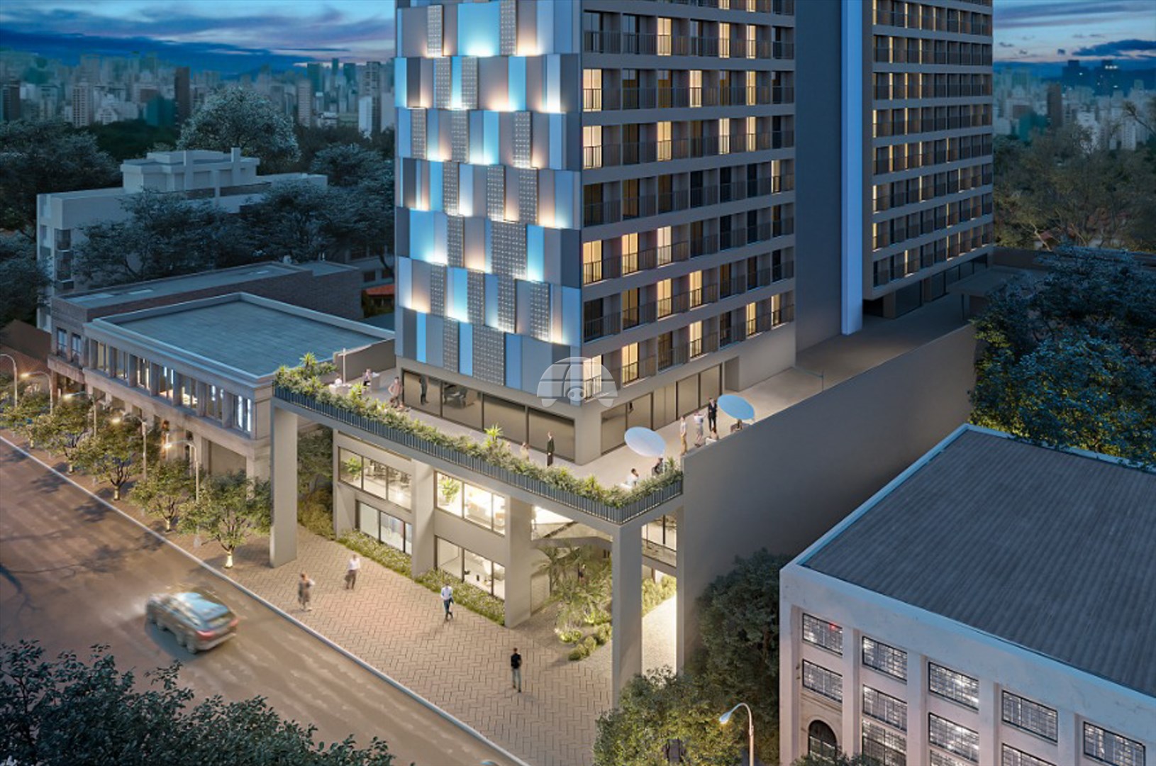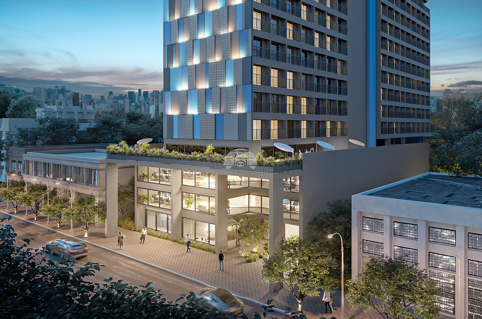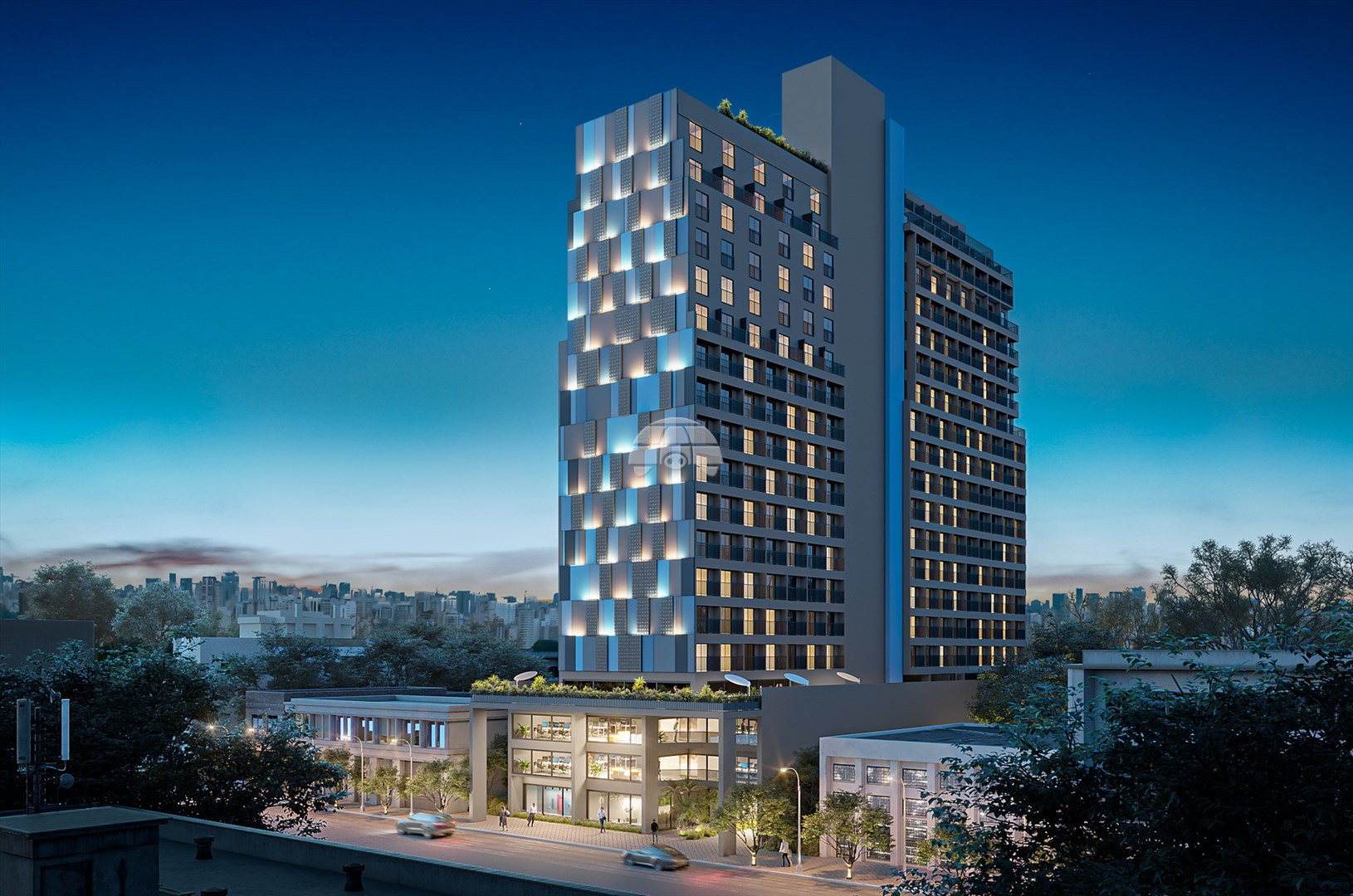 O empreendimento oferece mais de 1.900m² de áreas comuns no 4º pavimento, incluindo academia, coworking, pet place, lavanderia by OMO, cozinha compartilhada, vestiários, recreação descoberta, terraço gourmet, churrasqueiras, sala de jogos, lounge e horta. No térreo, destaque para recepção 24h preparada para locações por temporada, halls residencial e comercial, e lojas para conveniência diária. No 2º e 3º andares, bike park sustentável; e no 20º, piscina com borda infinita e solarium com vistas panorâmicas.
