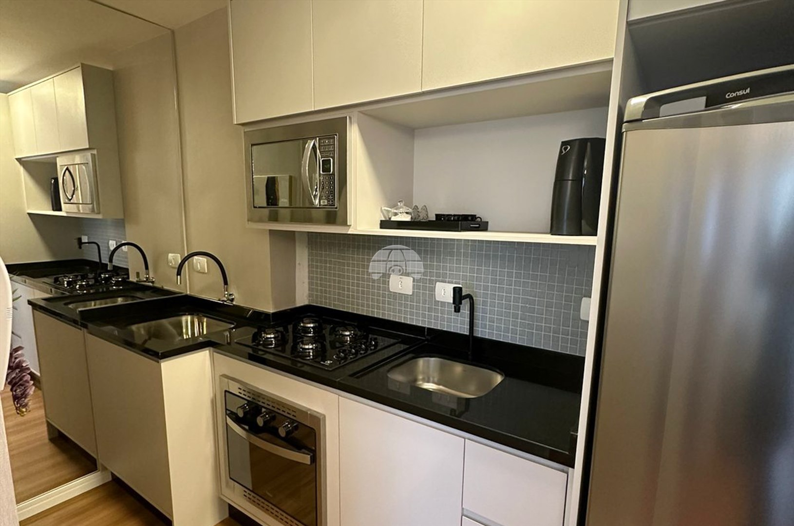 Sala, cozinha, 2 quartos, banheiro e sacada, ideal para moradia e investimento em locação, com acabamentos de qualidade, ponto para ar-condicionado e iluminação natural abundante, próximo a McDonald's, Carrefour e Arena da Baixada.