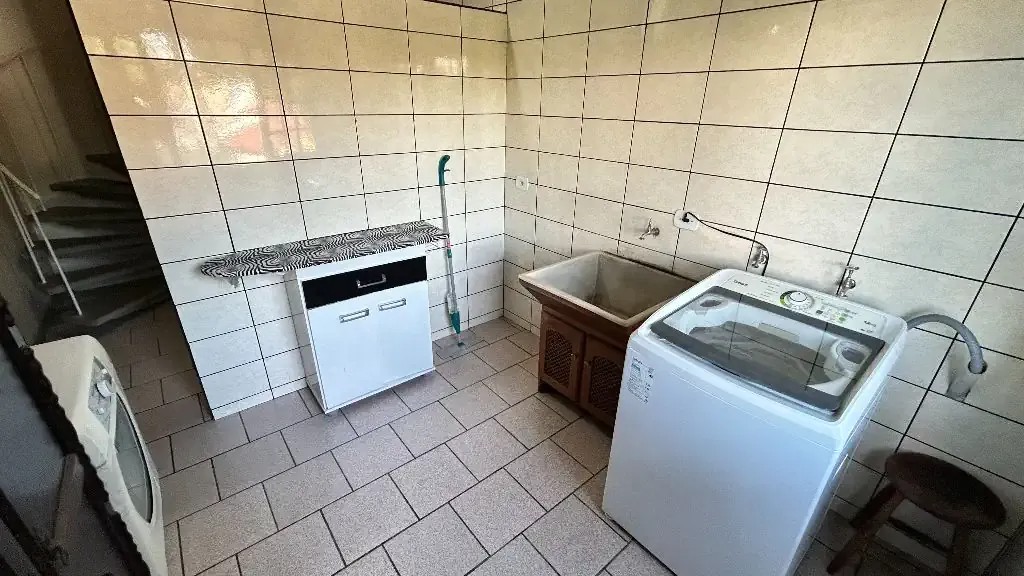 - Parte inferior com: Espaço gourmet com churrasqueira e mesa grande, lavanderia e 1 banheiro