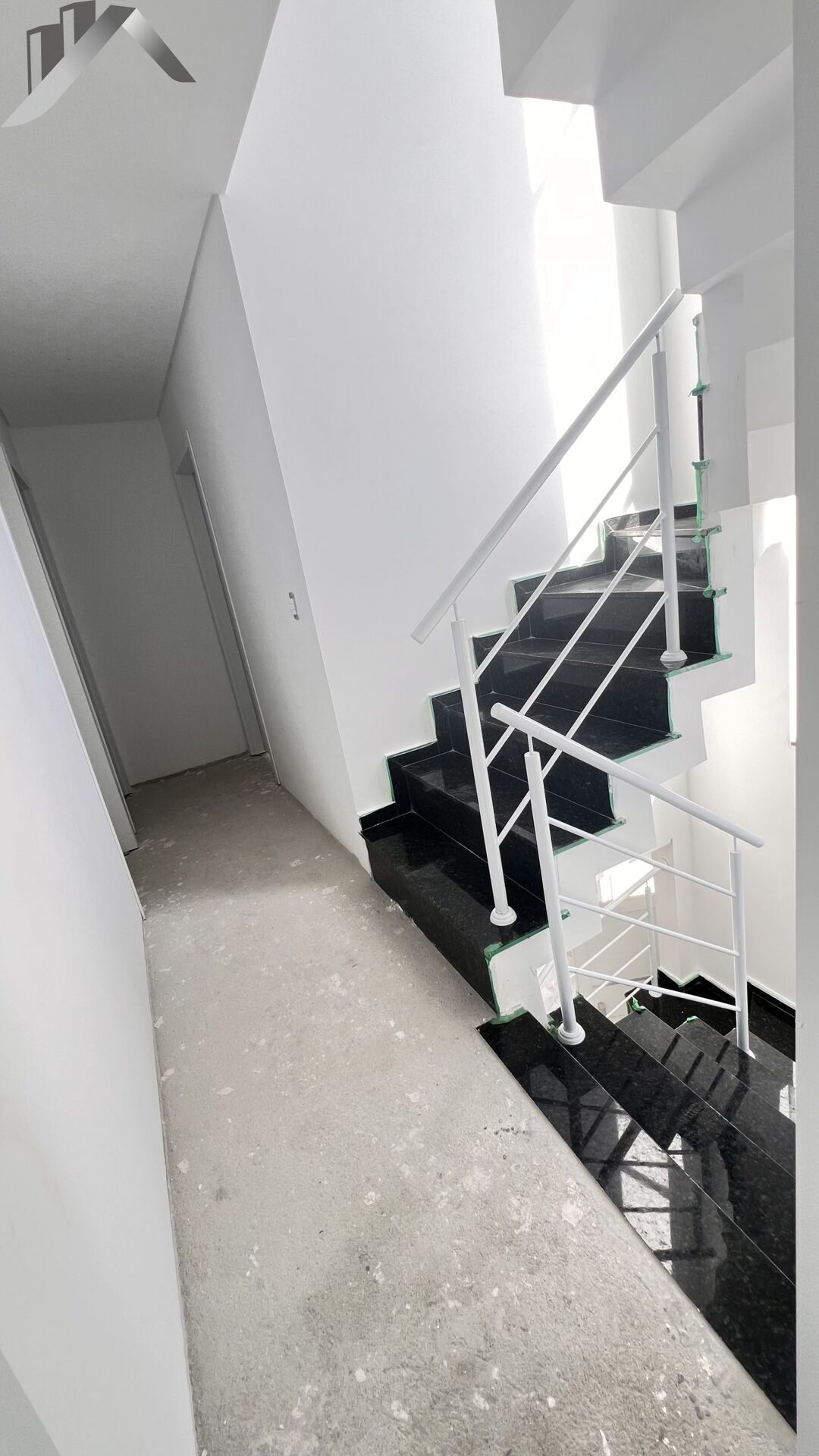 - Escadas com acabamento em granito verde labrador;