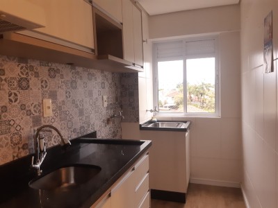 Descrição › Belíssimo apartamento com móveis sob medida, composto por 2 dormitórios, BWC social, sala de estar e jantar, cozinha, área de serviço, sacada com churrasqueira. Prédio com salão de festas, playground, elevador, terraço. Localização excelente na região central do Vila Nova, perto de escolas, farmácias, mercados, padarias e demais comércios da região.