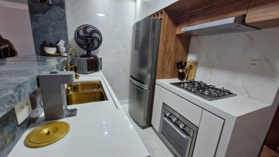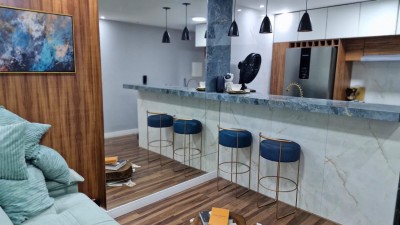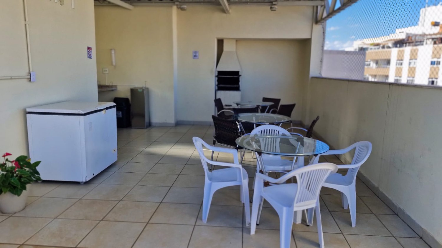 O apartamento está semi-mobiliado e conta com 1 banheiro, além de 1 vaga de estacionamento. O condomínio oferece diversas comodidades, como churrasqueira coletiva, elevador, piscina, salão de festas e terraço, proporcionando momentos de lazer e convívio social aos moradores.