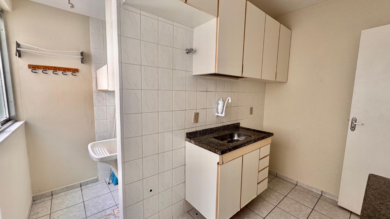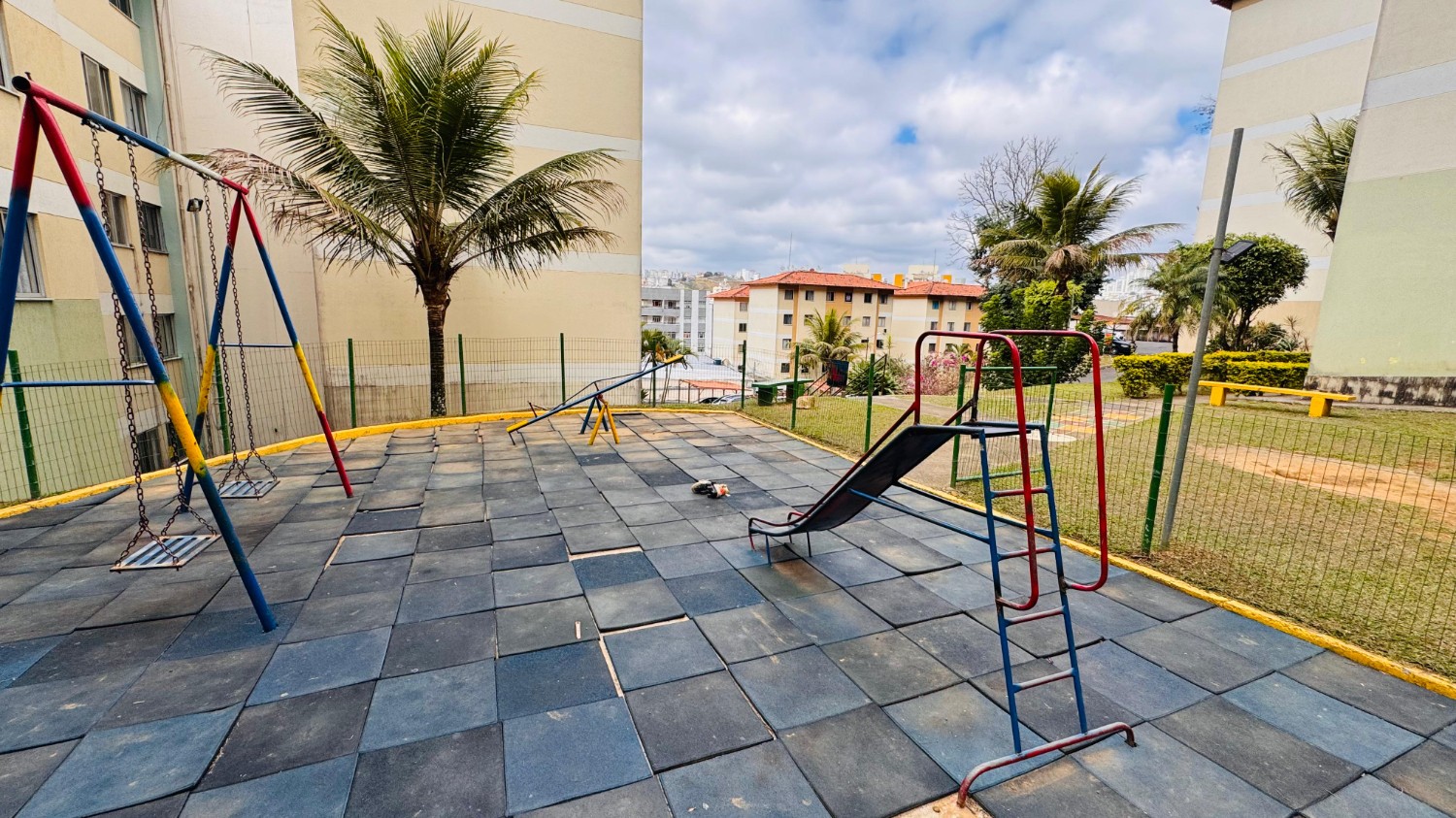 O condomínio oferece diversas comodidades, como área verde, permitindo animais de estimação, portaria 24 horas e salão de festas.