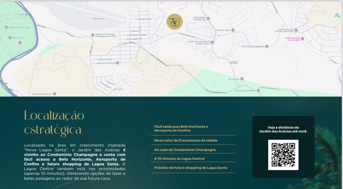 Descrição › Localizado no charmoso bairro das Acácias, em Lagoa Santa, MG, este terreno em condomínio oferece uma excelente oportunidade para quem busca um lugar tranquilo e seguro para construir a casa dos sonhos. Com uma área total de 360m², o terreno está situado em um condomínio com infraestrutura completa, incluindo área verde, churrasqueira coletiva, academia, playground, portaria 24 horas, quadra poliesportiva, quiosque e muito mais.