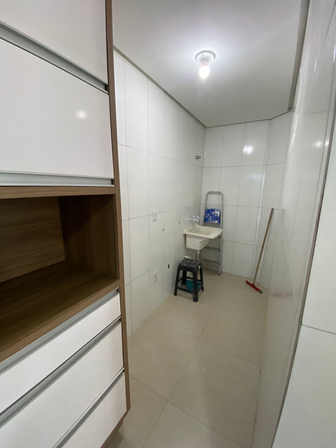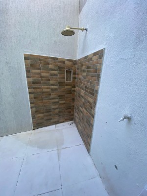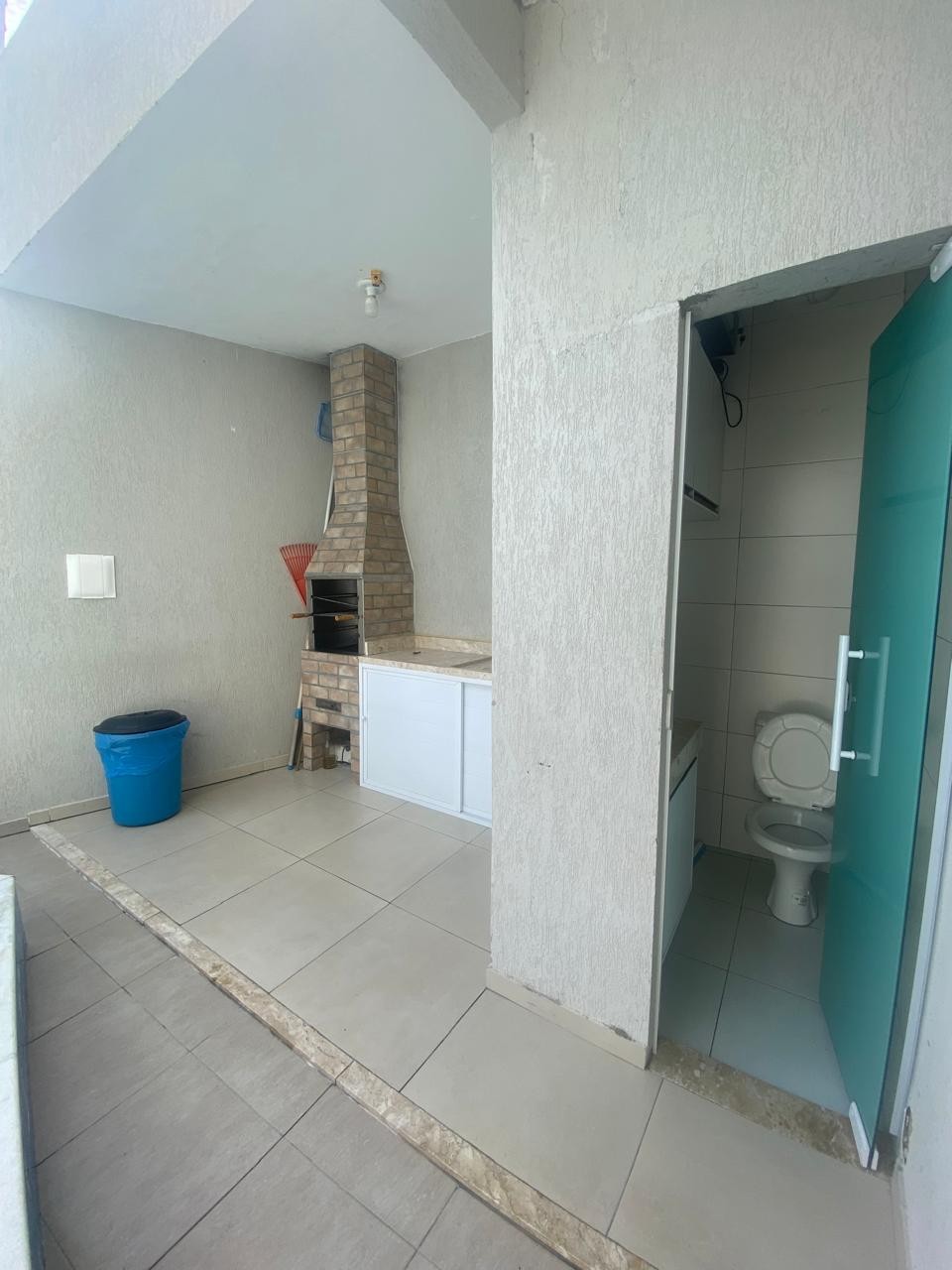 Área de serviço e espaço lateral com chuveirao