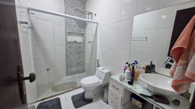 Banheiro Social, com acabamento de bom gosto, atendendo com qualidade aos outros dois quartos da casa.