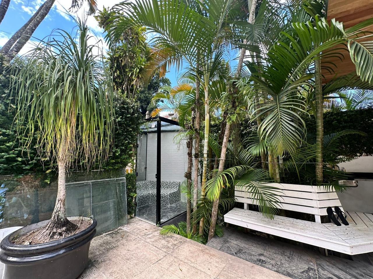 Descrição › condomínio...área nobre se São Conrado ; a 5 min a pé do canto direito da praia de São Conrado; ao lado de mercado ; farmácia e comércio ....4 salões; 3 suites grandes, sendo a master com closet e amplo deck externo ; piscina ; sauna ( pronta e só falta o vaporizador ); churrasqueira integrada com parte social da piscina com tetos projetados; garagem para 2 carros ; cozinha ? open concept ? de 30m2 integrada ao salão social ; lobby de quartos ; +1 Escritorio q pode se transformar em 1 Qto pequeno; o salao e sala de jantar são integrados à cozinha open concept ide 120m2; 1 sala de 25 m2 para home theater ; área social que integra área para sala de jogos e solarium com banheiro social integrado ; área SPA e Instalacoes prontas para ofurô; terraço de observação ; lavanderia; área para estocagem de alimentos; suíte de empregada externo à casa; banheiro para empregada ; área para estocagem de objetos ....