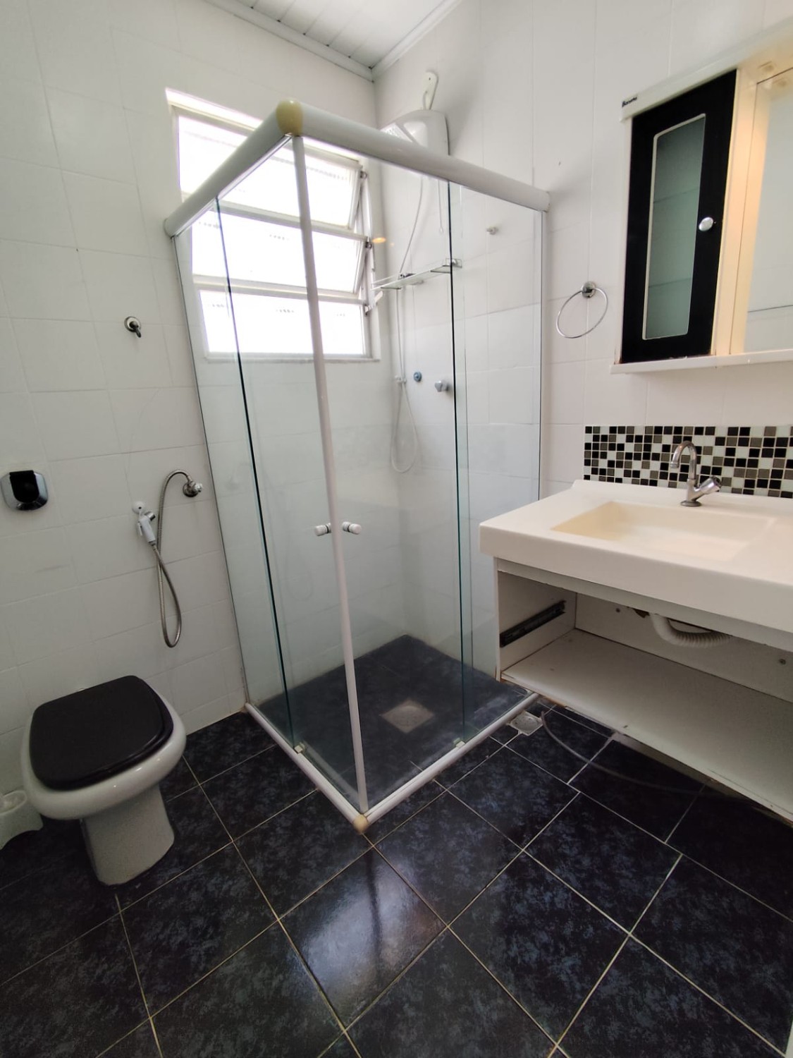 Banheiro social com box em blindex.