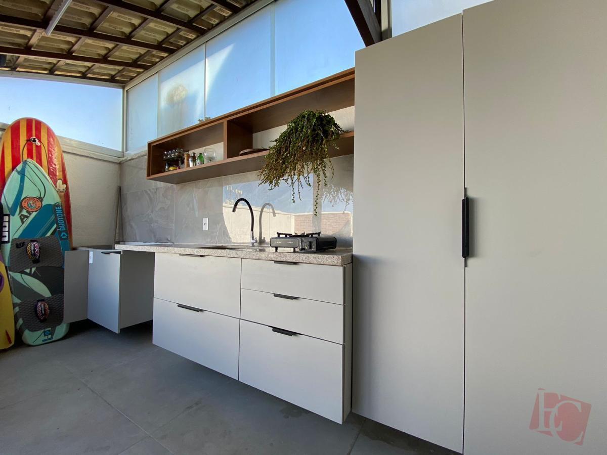 Varanda com bancada gourmet;
