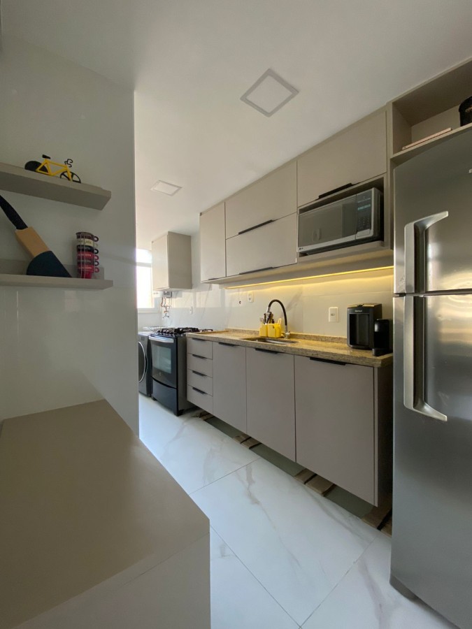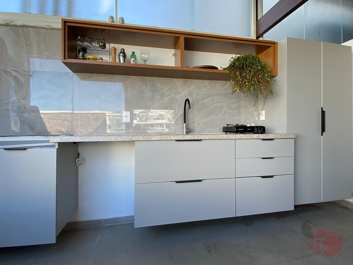 Cobertura duplex totalmente reformada, com fino acabamento em porcelanato e armários planejados em todos os ambientes (quartos, cozinha e banheiros).