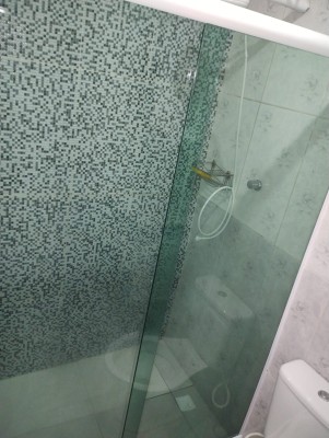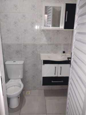• Banheiro social com armário e espelho