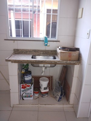 • Cozinha com pia em granito e janela