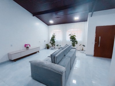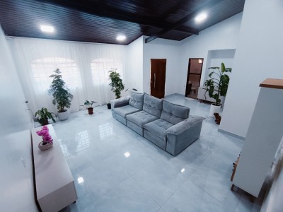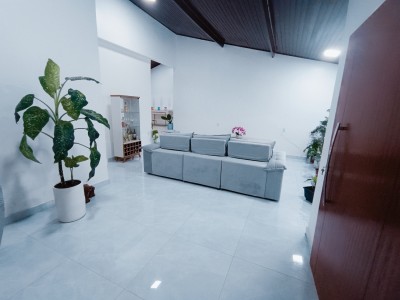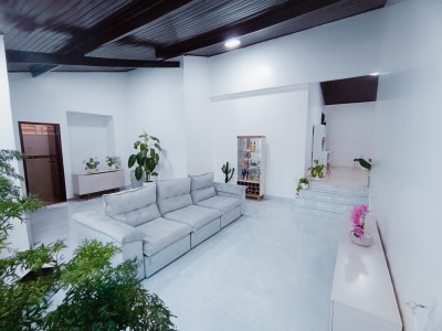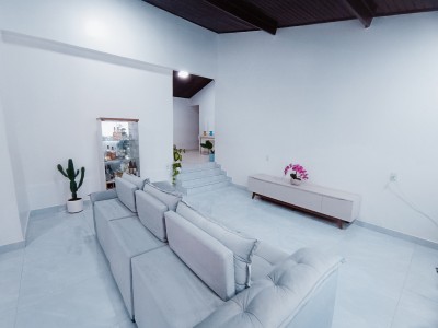 Sala reformada com porcelanato e cerâmica nas demais dependências