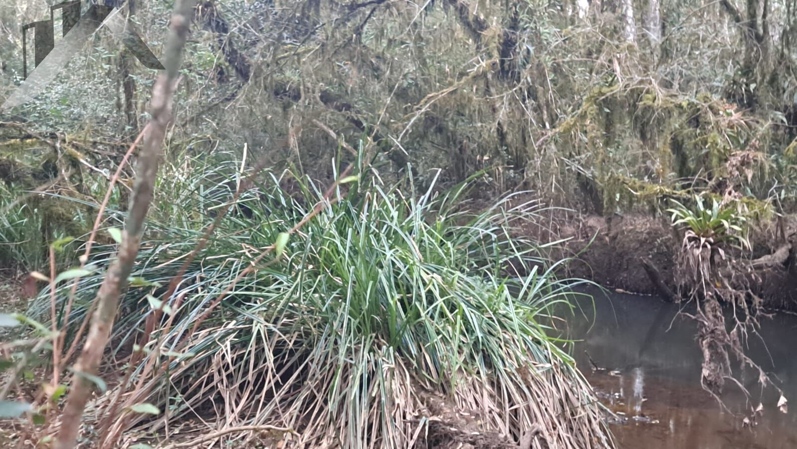 tanque de peixe e rio que passa na divisa da cha?cara .